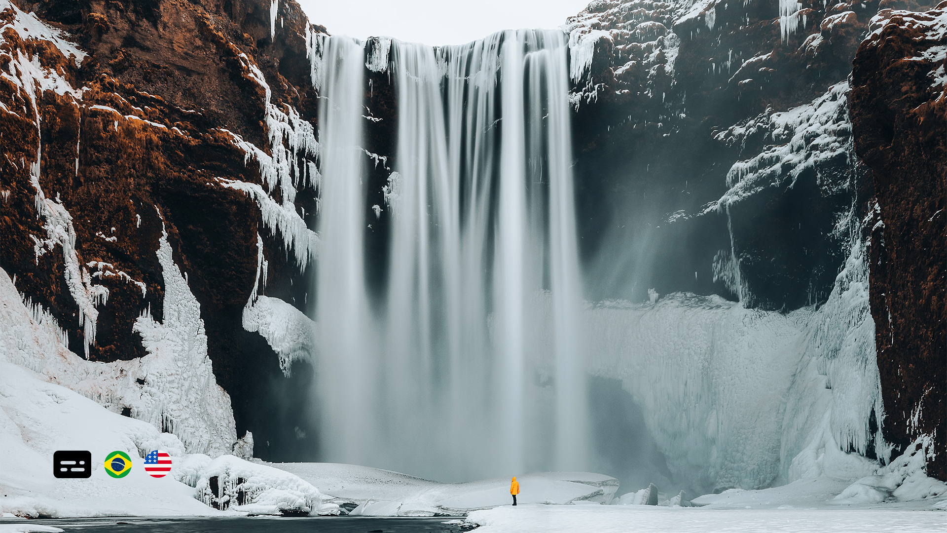 Entre gelo, neblina e mitos nórdicos, visitamos a imponente Skógafoss, uma das cachoeiras mais impressionantes da Islândia. Envolta por penhascos cobertos de gelo e uma neblina constante criada pela força da água, esse cenário quase místico é também palco de uma antiga lenda islandesa: a história dos trolls que foram surpreendidos pelo nascer do sol e transformados em pedra para sempre.